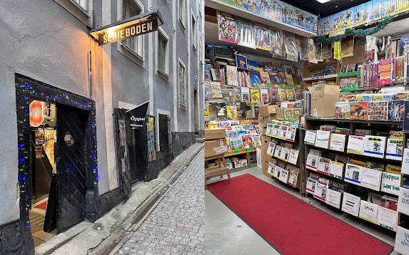 Sven vintappares gränd 2Sveriges äldsta serie-butik! Den här butiken har funnits sedan 1978 och är en riktig klassiker. Här hittar du serietidningar och serieböcker/samlingar i alla dess former - både nytt och begagnat. Samt att det går att sälja/byta in. Serieboden har även ett mycket brett sortiment av svenska serier från 1920-talet och fram till idag. Här hittar du Bamse, Kalle Anke, Knasen, Tintin och massor av andra klassiska serier. Ägaren är supertrevlig och pratsam! Det vi gillade extra mycket var att butiken var uppdelad i två sektioner - precis när du kommer in finns den billigare delen, de serier som betecknas som "läs-exemplar" samt inre delen som har mer rariteter.